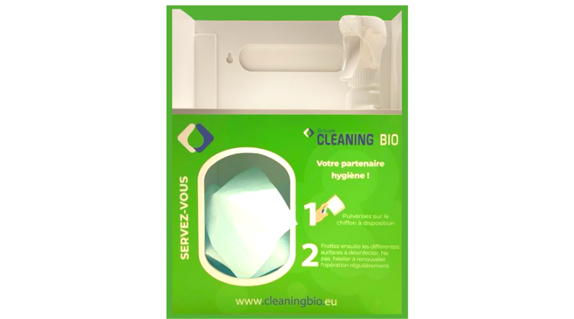 Le kit désinfectant collectif permettra à vos collaborateurs de s’assurer que leur environnement est hygiéniquement propre et désinfecté. Il se fixe au mur et est composé d’un désinfectant de surface, d'essuyages à usage unique et d’un gel hydroalcoolique.