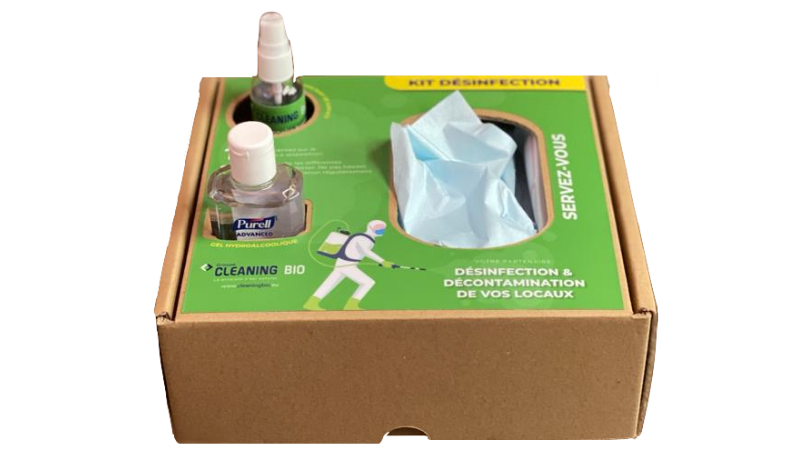 Le kit désinfectant individuel permettra à chacun de vos collaborateurs de s’assurer que son environnement est hygiéniquement propre et désinfecté. Il est composé d’un désinfectant de surface, d'essuyages à usage unique et d’un gel hydroalcoolique.